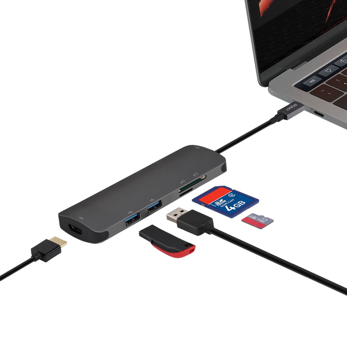 - Ports: High Speed USB 3.1 Type C to 2 x USB 3.0 , SD Card Reader , Micro SD Card Reader , HDMI Port & Type C Hubs Extension Hub