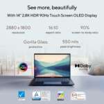 - Display: 14.0-inch Touch screen 2.8K (2880 x 1800) OLED Glossy Display having 16:10 Aspect Ratio || 0.2ms Response time || 90Hz Refresh rate || 400nits Brightness and 550nits HDR Peak Brightness