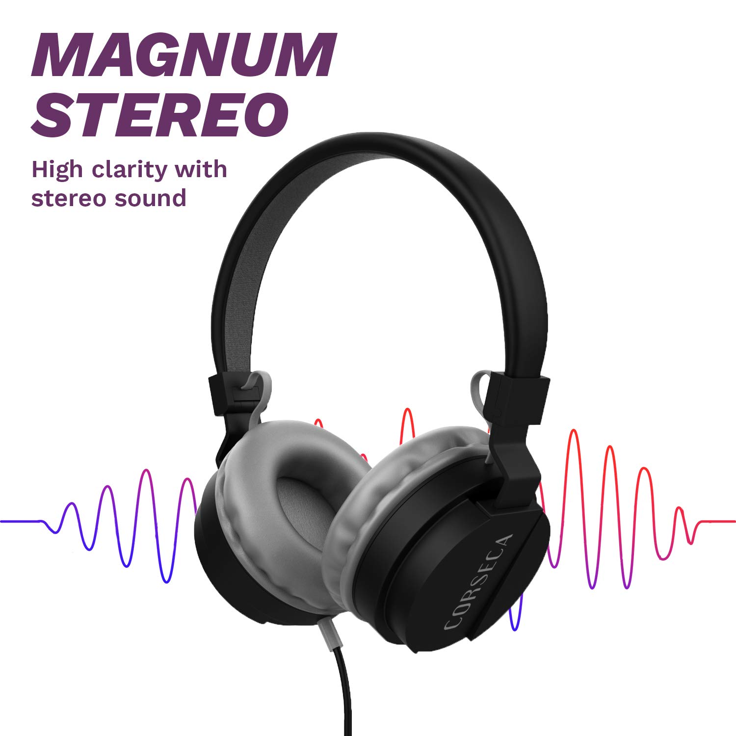 Corseca 3213 HD Stereo Sound On Ear Light Wired Headphones with Mic and 40mm Drivers for Enhanced Bass.