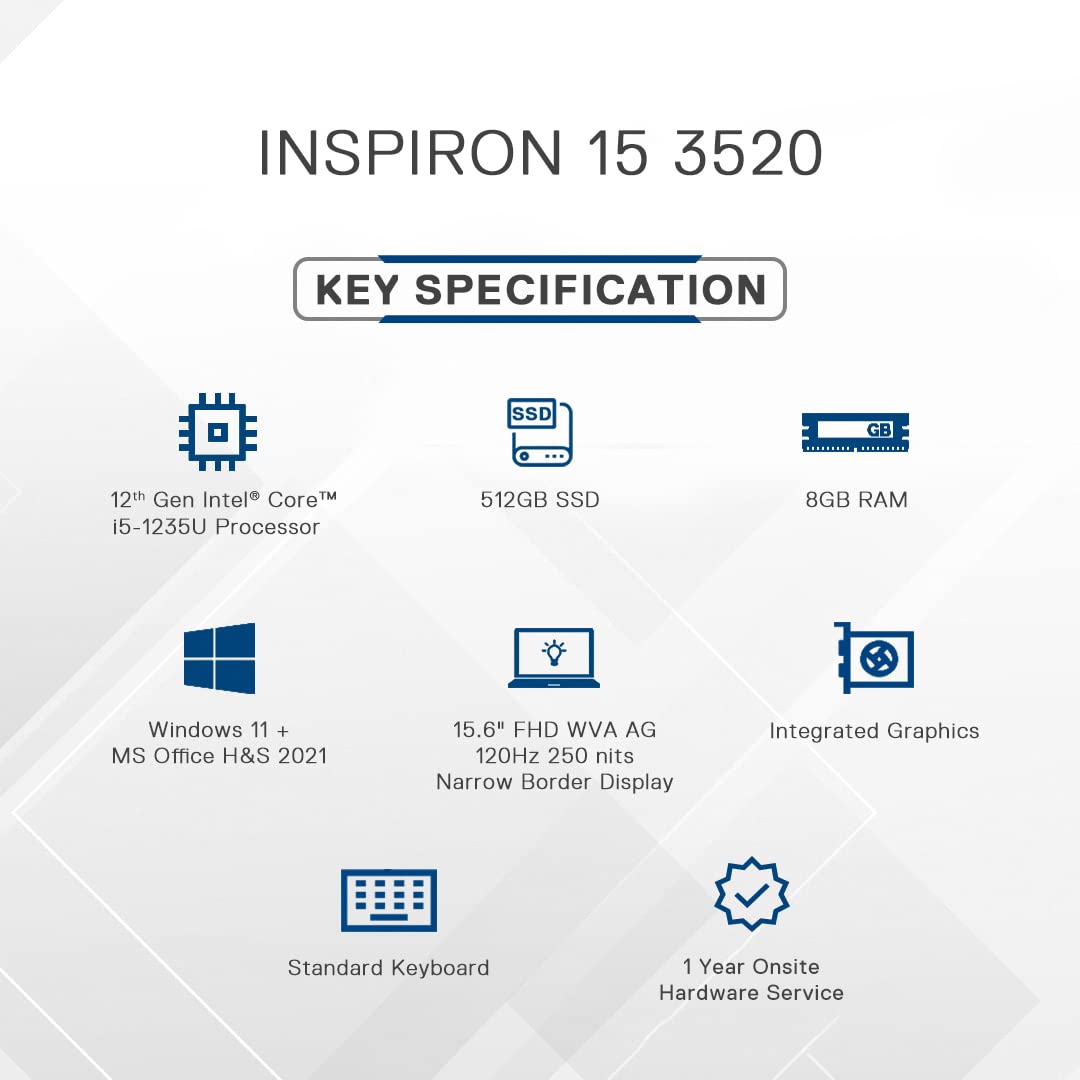 The Dell Inspiron 3520 Laptop features an Intel Core i5-1235U processor, 15.6″ HD display, 8GB RAM, and 512GB SSD, providing reliable performance for everyday computing tasks.