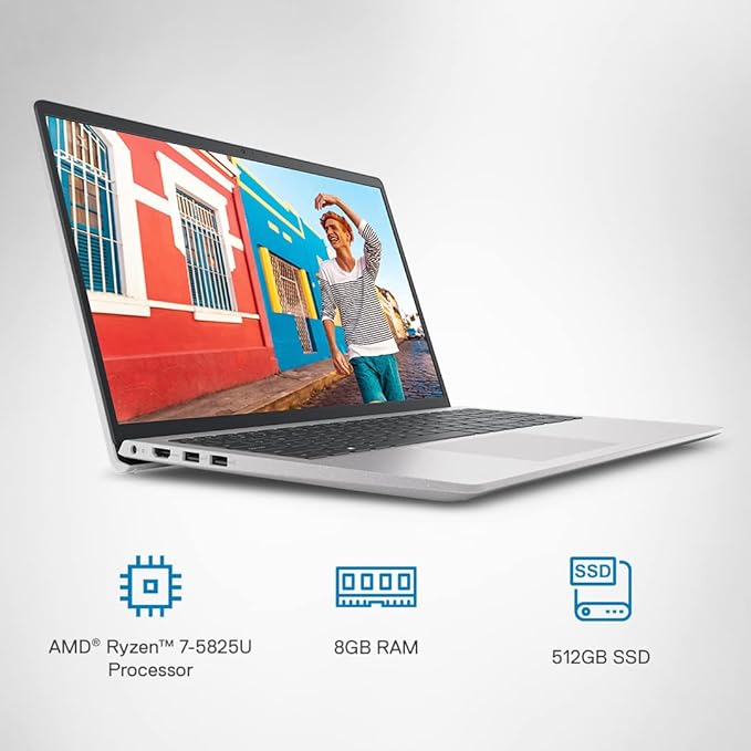 DELL New Inspiron 3525 Laptop, AMD Ryzen7-5825U, Win11 + Office’21, 8GB GDDR4, 512GB SSD, Radeon Graphics, 15.6″ (39.62Cms) FHD WVA AG 120Hz 250 nits, Backlit KB (D560782WIN9S, 1.68Kgs)
