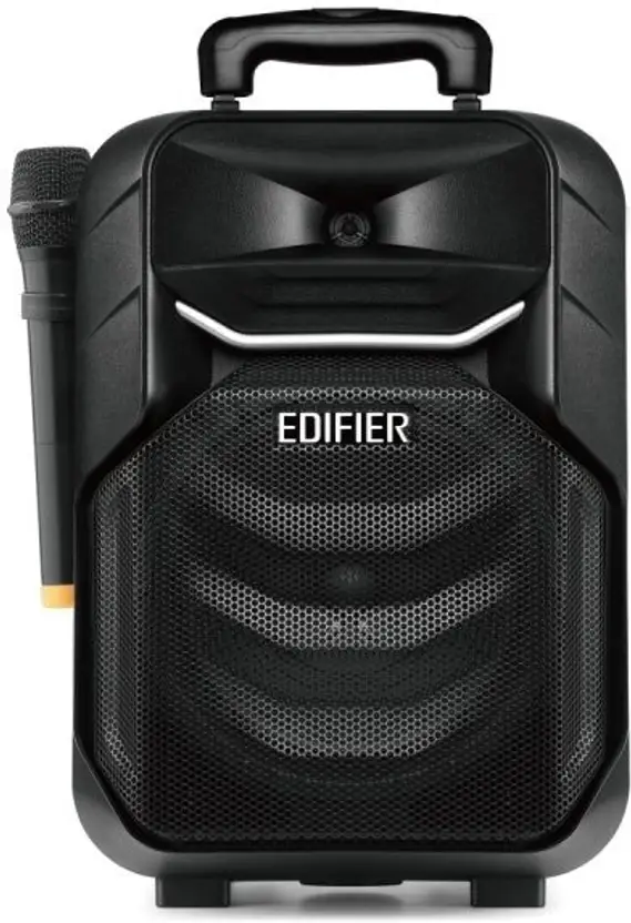 Indoor and outdoor modes, also accompaniment mode for karaoke Removable microphone stand, can put on speaker stand Indoor and outdoor modes, also accompaniment mode for karaoke Removable microphone stand, can put on speaker stand Indoor and outdoor modes, also accompaniment mode for karaoke Removable microphone stand, can put on speaker stand Specifications: Power Output :RMS 8W DC adapter/power supply :5V, 2A Signal to noise ratio :?80dB?A? Input sensitivity :LINE IN input?250±50mV Bluetooth input?250±50mFFS Total harmonic distortion + noise (%) :?0.5% Battery : 6600mAH?9~12 hours Loudspeakers : 8-inch mid-bass + true horn tweeter Adjustment form : button adjustment, potentiometer adjustment