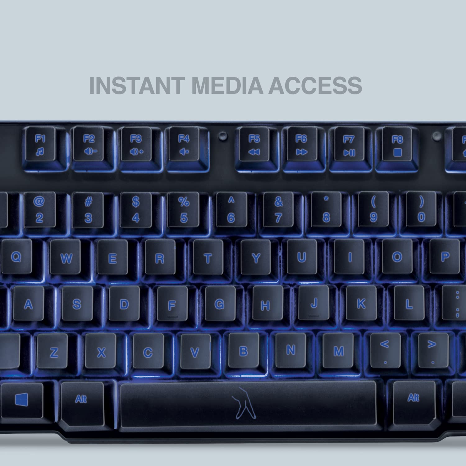 The FINGERS Blazing BlueLit Wired Backlit Keyboard with its classic black design and bright illuminated keys is a pleasing spectacle, sure to impress all those who see it. It’s rugged design and tough keys add a blazing performance experience.