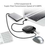 Honeywell Momentum 4-1 USB 3.0 Hub, 1.2 Meter Cable, Max Current 900mA, Transmission Speed 5GBPS, Universally Compatible with All USB PC, Laptop, Speaker, Mobile, Pen Drive, Hard Drive, Keyboard & Printer.