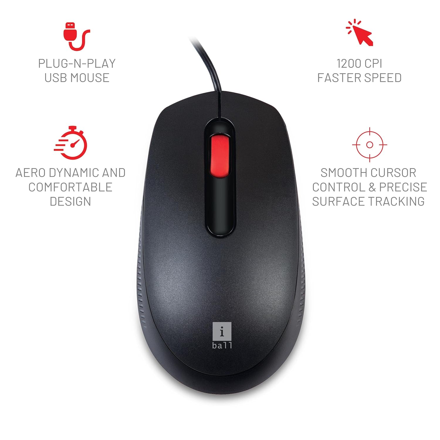The iBall Aero Advanced Optical Mouse with 1200 CPI Faster Speed, Ergonomic Design, Comfortable for Both Left & Right-Hand Users.
