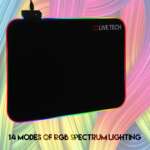 The Live Tech RGB Gaming Mouse Pad has the illuminated line around the edge is held in by a fishing line type filament. The pulse function is another rainbow option.