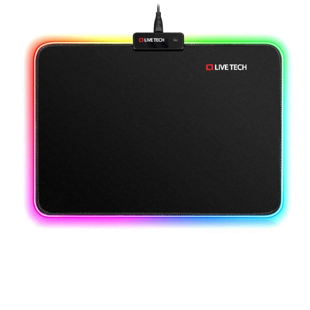 The Live Tech RGB Gaming Mouse Pad has the illuminated line around the edge is held in by a fishing line type filament. The pulse function is another rainbow option.