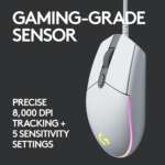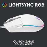 The Logitech G203 Wired Gaming Mouse is 8,000 DPI, Rainbow Optical Effect LIGHTSYNC RGB, 6 Programmable Buttons, On-Board Memory, Screen Mapping