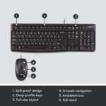 The Logitech MK120 Wired USB Keyboard and Mouse Combo has the bold, bright white and long-lasting characters make the keys on this PC or laptop keyboard easy to read and extra durable.