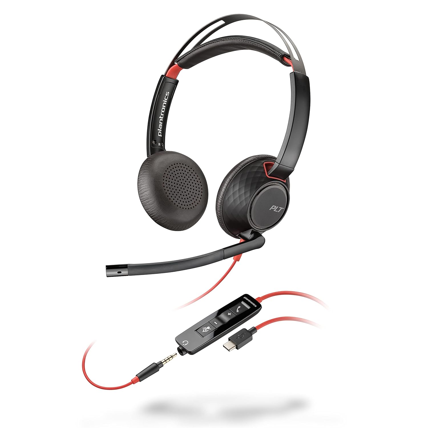 Poly by Plantronics Blackwire 5220 USB-C Dual Ear Stereo Wired Over Ear Computer Headphones with Mic Connect to Pc/Mac, Tablet, Cell Phone Via USB-C Or 3.5 Mm Connector