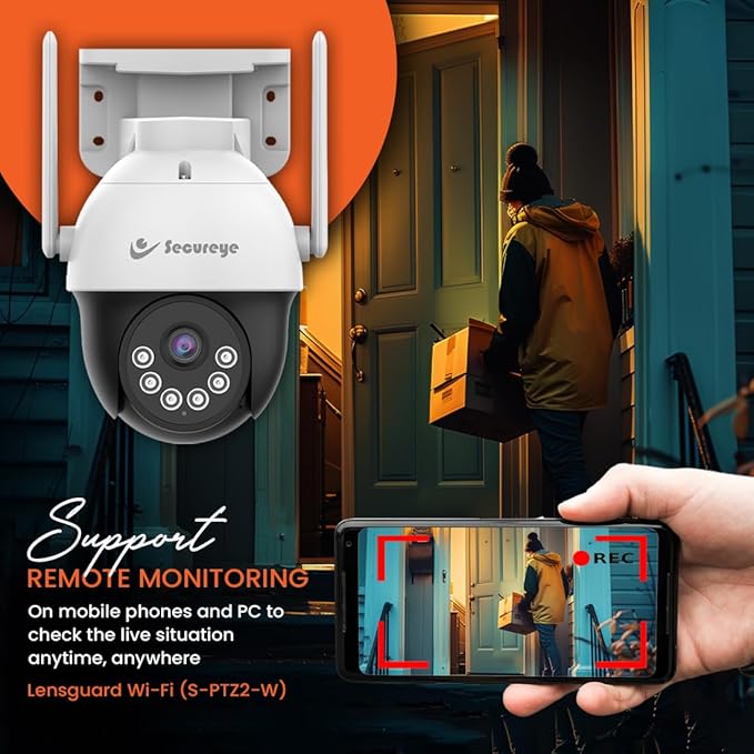 Secureye S-PTZ2-W Pelican Series Lensguard WiFi | 3MP HD | 355° Pan and 90° Tilt | 6 Pre-Set Motion | Home/Commercial Security Camera | 2 Way Talk | Cloud Storage | Supports Up to 256GB TF Card Storage